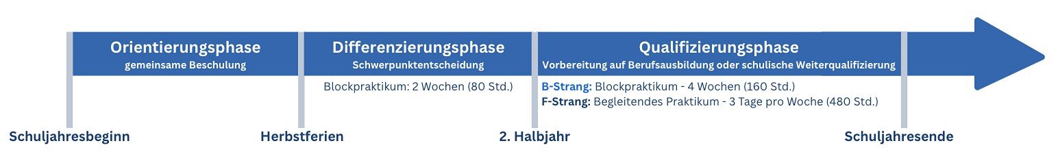 Die erste Phase der praktischen Ausbildung findet im jeweiligen Schuljahr in der Zeit nach den Herbstferien statt. Das Blockpraktikum im B-Strang wird unmittelbar nach dem Halbjahreszeugnis durchgeführt.