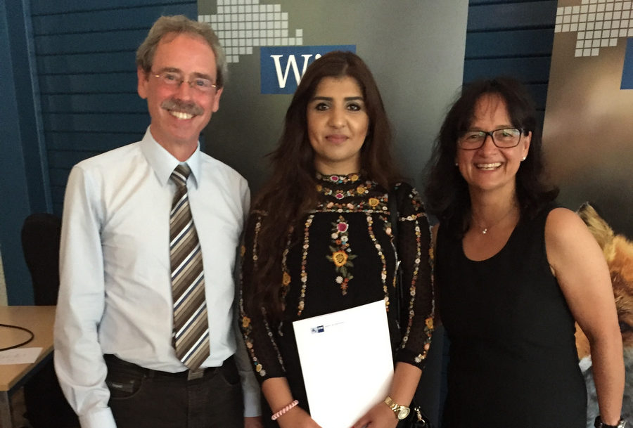 v.l.n.r.: Abteilungsleiter der Berufsschule Manfred Krenitz, Berufsbeste Zohre Dariab, kommissarische Schulleiterin Sabine Noetzel