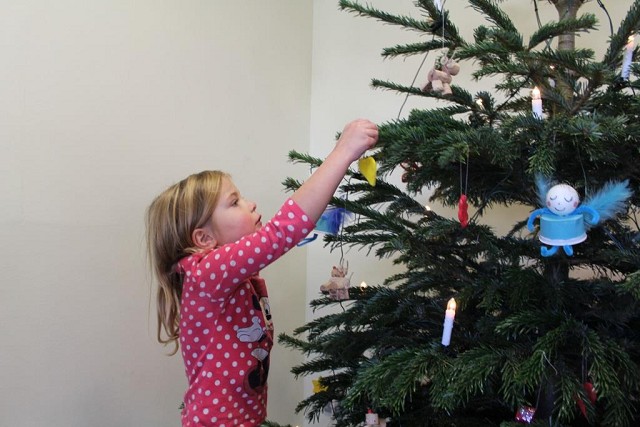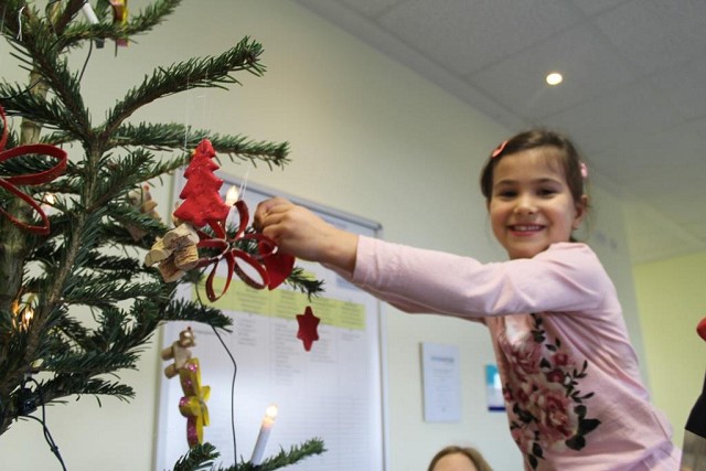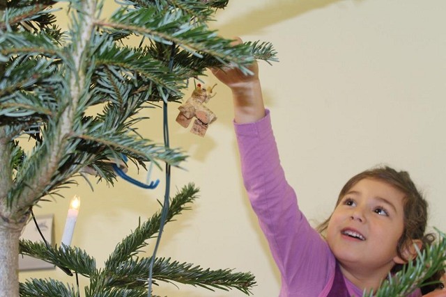 Die „Profischmücker“ des Schul-Weihnachtsbaums