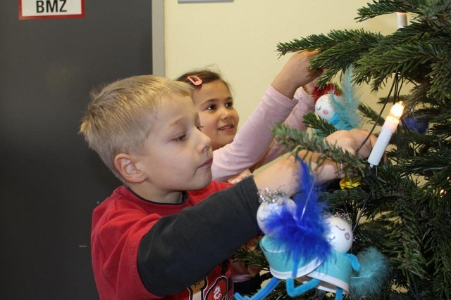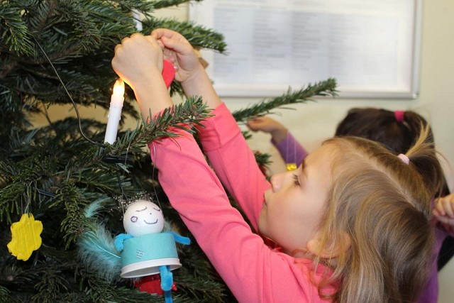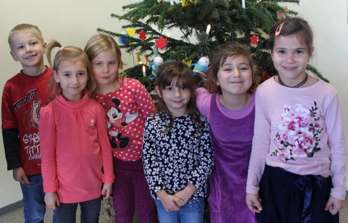 Sechs Kinder der Städtischen Kindertagesstätte Schölerberg schmückten mit selbst gebasteltem Weihnachtsschmuck den Tannenbaum im Eingangsbereich und läuteten damit die Adventszeit in unserer Schule ein. Begleitet von der Leiterin der Kindertagesstätte Martina Vogel und den Erzieherin Laura Detmer und Ira Kybart, kamen die sechs Schulhopser Dilara, Elsana, Malin, Fiona, Liana und Alan in unsere Schule, wo sie von dem Abteilungsleiter des Wirtschaftsgymnasiums Jochen Pabst in Empfang genommen und im Schulleiterbüro begrüßt wurden. Sichtlich beeindruckt durften sie das Büro erkunden und auf dem Chefsessel Platz nehmen, bevor es an die Arbeit ging. Voller Stolz präsentierten sie einen großen Karton mit selbst gebastelten Rentieren aus Kork, Herzen und Sternen aus Salzteig, Papierblumen und Engeln. Mit Begeisterung brachten sie ihre Werke an dem Tannenbaum an und verwandelten ihn so in einen wunderschönen Weihnachtsbaum. Als Dank gab es für die Kinder zum krönenden Abschluss frisch gebackene Waffeln und ein Foto von allen vor dem fertig geschmückten Weihnachtsbaum zum Mitnehmen.