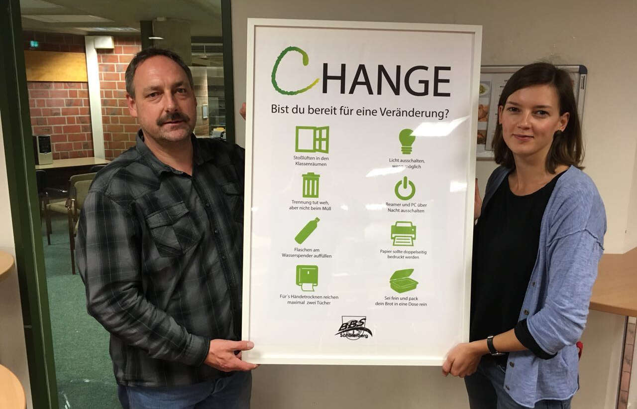 Im Rahmen eines Projektes des Beruflichen Gymnasiums der Klasse 11 ist ein Plakat zu nachhaltigem Verhalten an unserer Schule entstanden.