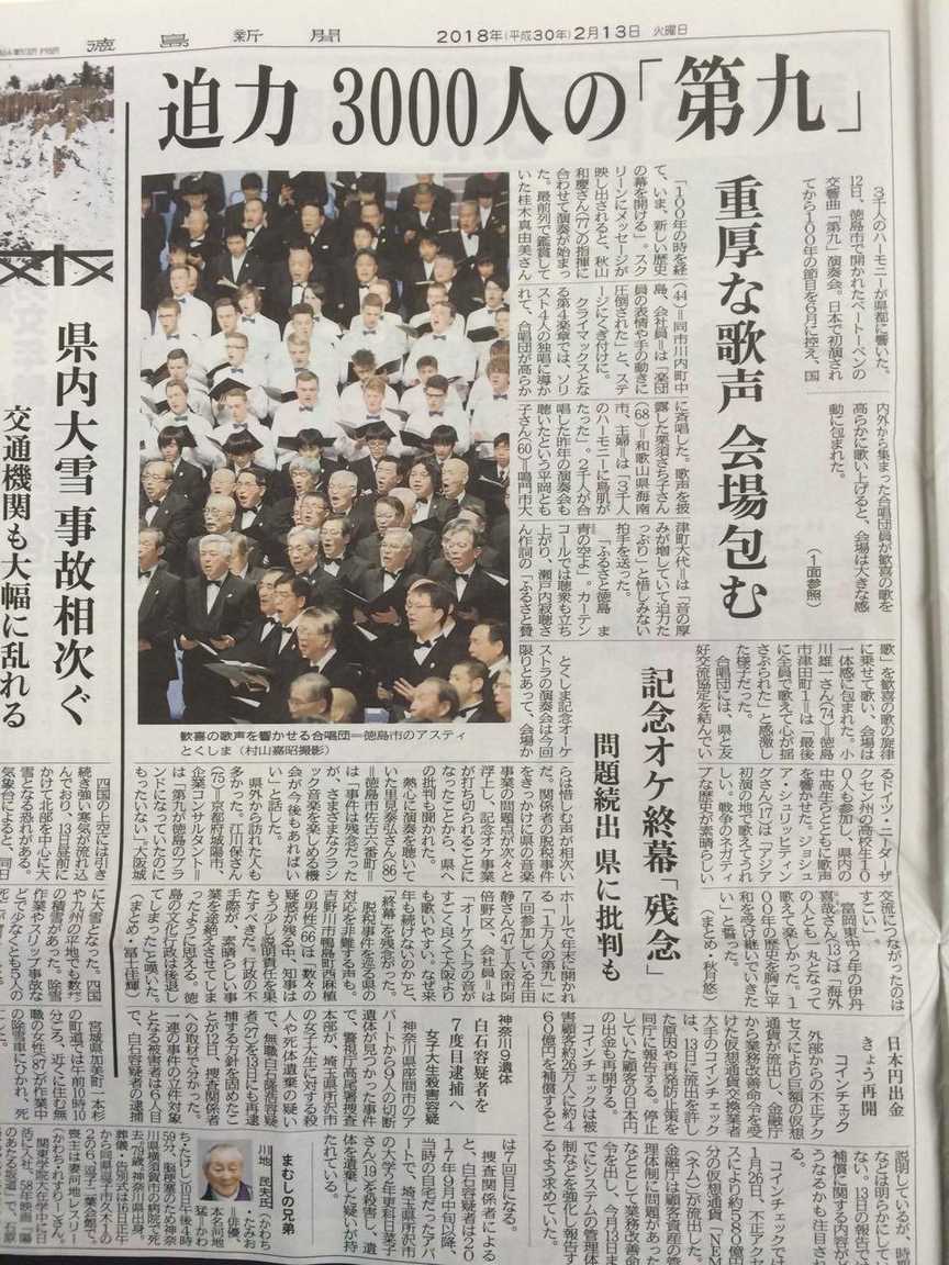 Zum Abschluss des Konzertes sangen alle die Landeshymne der Provinz Tokushima. Diese hat den 4. Satz der 9. Sinfonie als Grundmelodie.