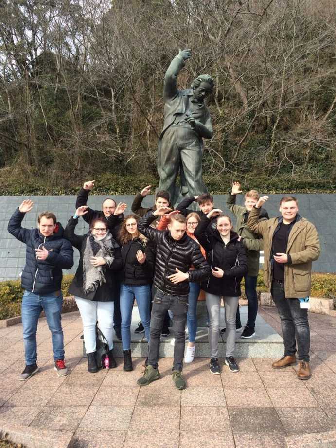 Am 8. Februar ging es los. Zehn Schülerinnen und Schüler der BBS am Schölerberg flogen nach Japan, um an dem Musikprojekt teilzunehmen. Mit im Tross waren auch Schülerinnen und Schüler der BBS Brinkstraße. Beide Gruppen hatten sich seit den Sommerferien durch gemeinsame Chorproben auf dieses Ereignis vorbereitet. Begleitet werden sie von einigen Lehrerinnen und Lehrern.