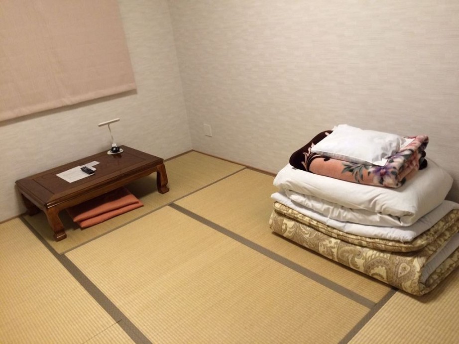 Als wir wieder im Hotel ankamen, hatten wir einen ereignisreichen Tag hinter uns. Das Hotel ist übrigens nicht mit europäischen Hotels zu vergleichen. Sessel oder Stühle gibt es nicht, denn man kniet oder steht. Ein typisches Bett gibt es auch nicht. Wir schlafen auf dem Boden, auf Tatamimatten. Zuerst wird eine Matte auf dem Boden ausgerollt, darauf kommt eine zweite Matte mit einem Laken darüber und dann das Oberbett. Darauf lässt es sich aber entspannt schlafen. Gute Nacht!