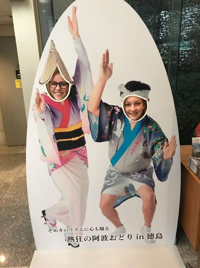 Während des Buffets wurden regionale Tänze, die sogenannten Awa-Tänze, aufgeführt. Die Tänzer animierten uns, mitzutanzen. Das taten wir auch – wie man im Video sehen kann!