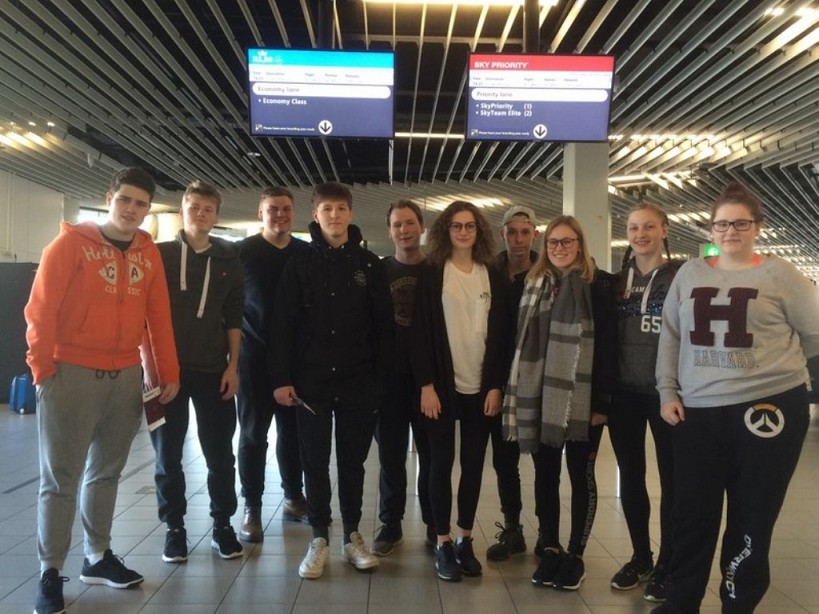 Schüler/-innen der BBS am Schölerberg vor dem Ablug in Amsterdam
