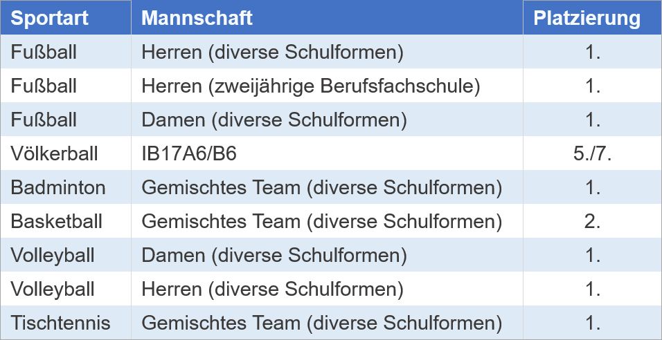 Sieben erste Plätze bei der BBS Sportwoche 2019